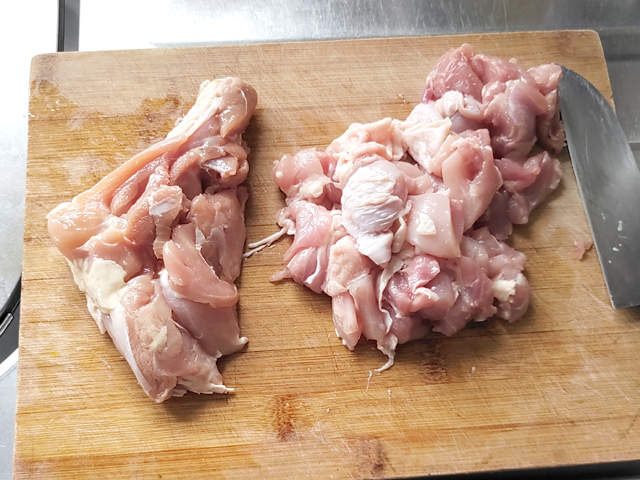 1:鶏肉は小さめの一口大に切ります。