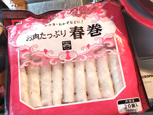 6:今回は、業スーのお肉たっぷり春巻きを使いました。