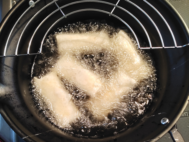 ※しっかりと火が通らないと危険なので、表面が茶色くなるまで、少し長めに揚げてみてください。