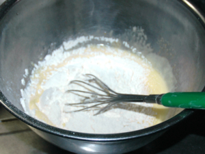 ③牛乳を少しずつ加え、その都度良く混ぜます。