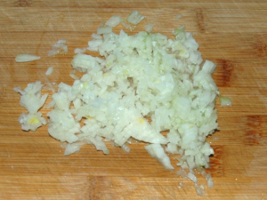 ![]() ②玉ねぎは皮をむき、みじん切りにしてから、水にさっと放ち、手で軽く揉んでから、水気をしっかりと切ります。 |