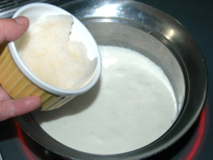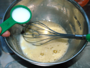 ![]() ②牛乳も加え、しっかりと混ぜましょう。 |