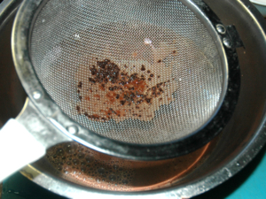 ![]() ⑧鍋の中身をこし、大き目のボールに入れます。 ⑨底に氷水をあて、更にとろみがつくまで冷やしながら混ぜましょう。 |