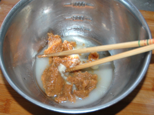 ![]() ⑥★みそだれの材料は良く混ぜ合わせておきます。 |