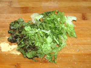 ![]() ⑨レタスは流水で洗い、千切りにしておきます。 |