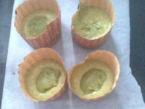 バレンタインが近いということで、フォンダンショコラの抹茶バージョンを作ってみました。とろーりとはなりませんが、切ると中身のチョコが軽く溶け出す感じになります。