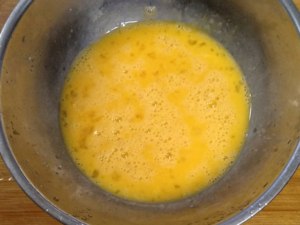![]() ②ボールに卵と砂糖を入れ、よく溶きほぐしたら、卵焼き用フライパンで焼き、厚焼き玉子を作ります。 |