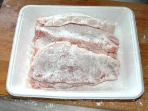 ③肉の表面にまんべんなく、薄力粉をまぶします。