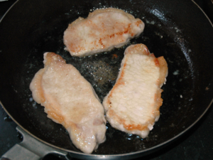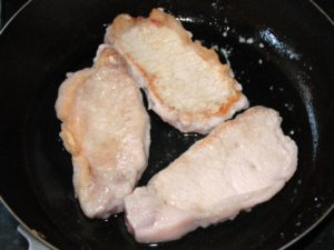 ⑥肉に焼き色が付いたら、一旦取り出しましょう。