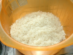 ![]() ①米は炊く30分前にとぎ、水気を切っておきます。 |