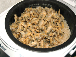 ![]() ⑥炊きあがったら、取っておいたむき身あさりを加え、10分蓋をしてむらします。 ⑦蒸らしたら、さっとかき混ぜましょう。 |