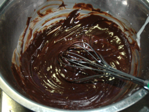 チョコガナッシュのラム酒は、そのまま加えてもOKですが、今回はアルコール分を飛ばすように一度火にかけています。