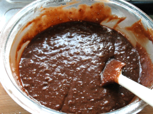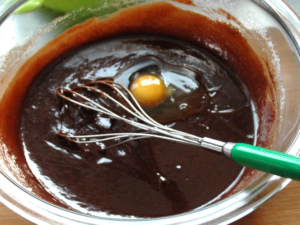 ![]() ⑥この時点で粗熱が取れているので、卵を1個ずつ加え、その都度良く混ぜましょう。 (ここでしっかりと混ぜないと失敗します。) |