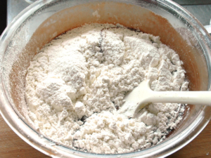 ![]() ⑨粉っぽさがなくなったら、生地作りは終了。 |
