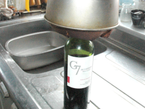 ![]() ⑩焼けたらすぐに、中央部分を瓶などに刺して、逆さにした状態で、2時間以上冷まします。 |