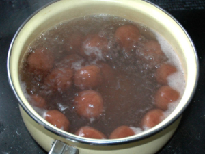 ![]() ④浮いてきたら、2~5分ほど煮ます。 |