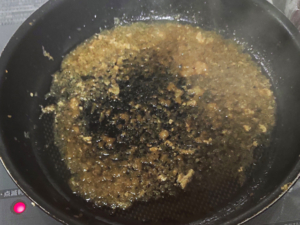 ![]() ⑧肉にしっかりと火が通ったら、肉を取り出して食べやすい大きさに切りましょう。 ⑨フライパンに残ったソースを中火で加熱し、水分が少なくなったら、ソースはOK。 |