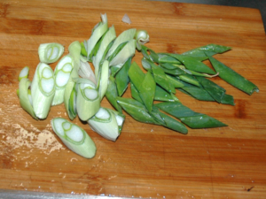 ![]() ⑥ねぎは斜め切りにします。 |