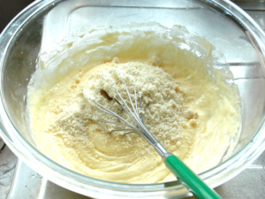 ![]() ③アーモンドパウダーを加え、ざっと混ぜます。 |