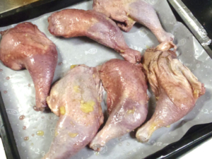 ![]() ⑤鶏肉を取り出し、天板にクッキングシートを敷き、皮目から、200度のオーブンで20分ほど焼きます。 ⑥一旦天板を取り出し、更にオーブンを200度に温め直してから、20分ほど焼きましょう。 |