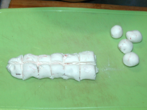 ④白玉粉を16~20等分し、それぞれ小さい団子状に丸めます。