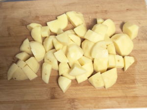 ![]() ①じゃがいもは皮をむき、小さめの一口大に切ります。 |