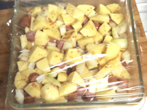 じゃがいもを加熱する時には、しっかりと調味料を混ぜないと、加熱している最中に固まった調味料(コンソメなど)が焦げることがあります。