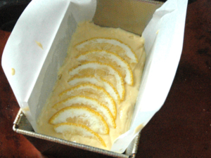 ![]() ⑦パウンド型に薄く油を塗り、オーブンシートを貼りつけます。 ⑧生地を型に流し入れ、上に薄切りにした柚子を並べましょう。 (酸っぱいのが苦手な方は、並べない方が良いと思います。) |