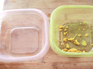 ![]() ①レモンは皮をお湯で洗って、ワックスを取り、おろし金で黄色い部分だけをすりおろします。 |