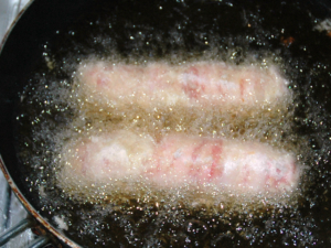 ![]() ⑦170度くらいの中温で、きつね色になるまで揚げます。 |