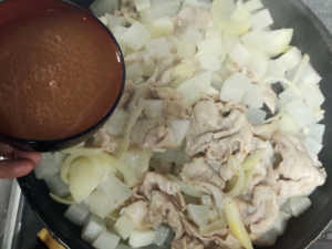 ![]() ④容器に、水、砂糖、みりん、ほんだし、醤油、片栗粉を混ぜ合わせて、合わせ調味料を作っておきます。 |