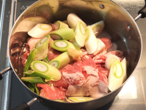 ねぎは後で入れても良いですが、今回は味が染みるように先に入れています。