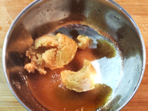 ![]() ④煮立たせている間に、容器に砂糖、醤油、生姜、味噌を入れて混ぜ合わせ、調味料を作っておきましょう。 |