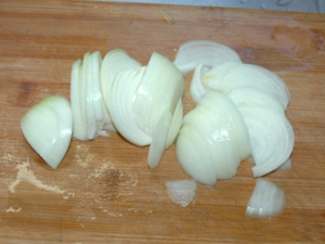 ![]() ③玉ねぎは薄切りにします。 |