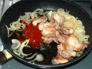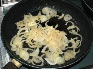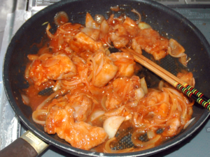 ![]() ⑥肉を一旦取り出し、薄切りの玉ねぎを炒め、玉ねぎがしんなりしたらOK。 |