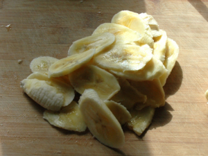 ![]() ①バナナは、2本ほど、飾り用に薄く斜め切りにする。 |