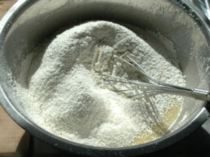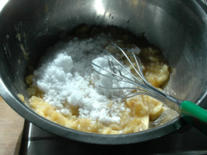 ![]() ③砂糖も加え、泡立て器で良く混ぜ合わせましょう。 |