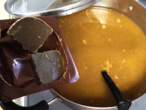 ちょっと最初に水を入れすぎたので、カレールーの登場となりました💦