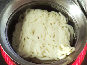 ![]() ⑦つゆの準備が出来たら、後はうどんをパッケージの時間通りにゆでればOKです。 |