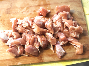 ![]() ①鶏肉は、一口大に切ります。 |