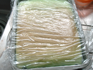 ⑨ケーキが焼けたら、すぐにラップをし、しっかりと冷まします。