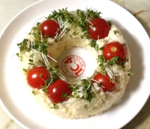 サラダはリース風に、クリスマスっぽくしてみました。