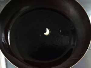 ![]() ②フライパンに薄く油(分量外)を引き、弱火でニンニクを炒めて香りを出しましょう。 |