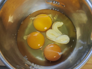 卵にマヨネーズを入れると、ふわふわになりますし味付けも同時にできます。