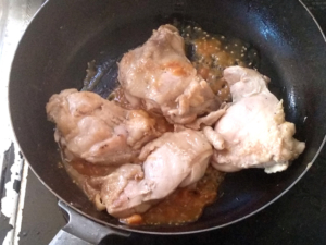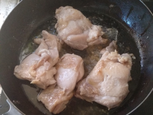 ![]() ②フライパンに薄く油(分量外)を引き、鶏肉の両面に焼き色を付けましょう。 |