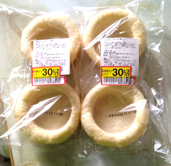 ![]() ①今回は、市販のカップパンを買いました。 (3割引きだったので、早めに使いました。) |