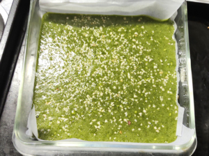 ![]() ⑥オーブンシートを敷いた型に流しいれ、アーモンドダイスを均一に散らしましょう。 |