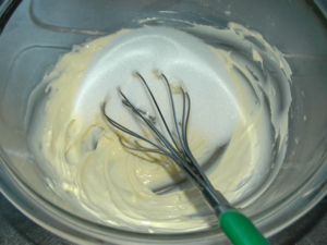 バターを柔らかくし過ぎると、混ぜにくくなってしまうので、マヨネーズ状で留めて置いて下さい。