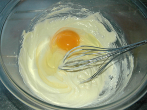 ![]() ③室温に戻した卵を加え、全体になじむように良く混ぜ合わせます。 |