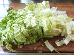 ①白菜は5cm幅くらいの厚さに切ります。